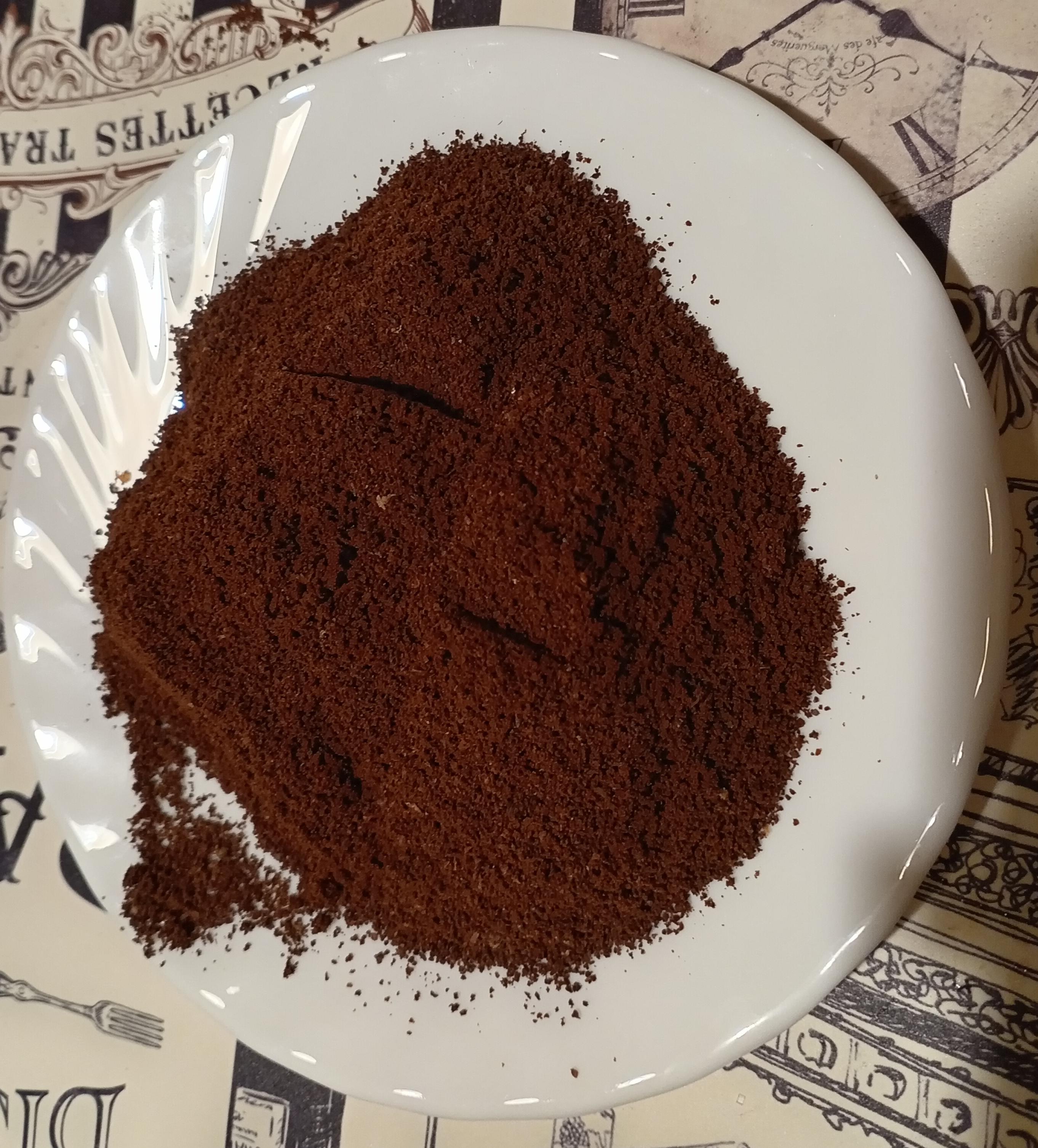 Кофемолка справилась отлично, кофейные зерна перемолоты в пыль. Отличный помол для турки. Неожиданно было получить такой результат от кофемолки с коническими жерновами, обычно для такого тонкого помола приходится использовать дорогие кофемолки с плоскими жерновами.