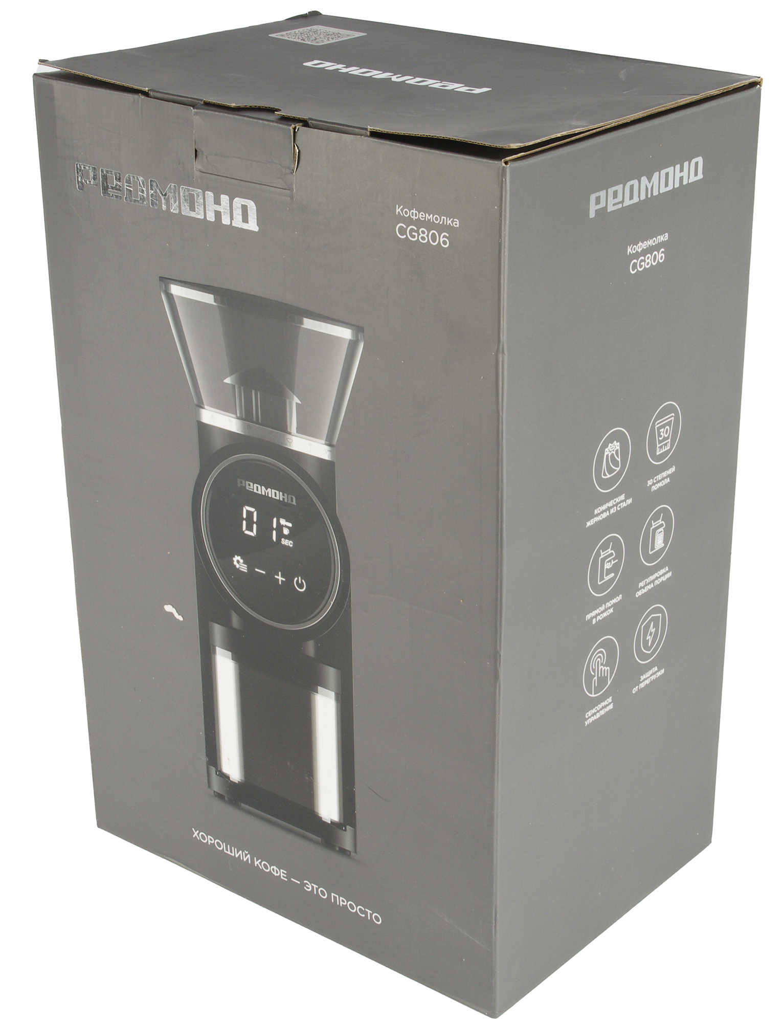 Сегодня в нашем обзоре жерновая кофемолка Redmond CG806, оснащенная металлическими жерновами и сенсорной панелью управления. Устройство позволяет устанавливать одну из 30 степеней помола, что должно покрыть потребности любителей самого разного кофе. Давайте проверим устройство в деле.
