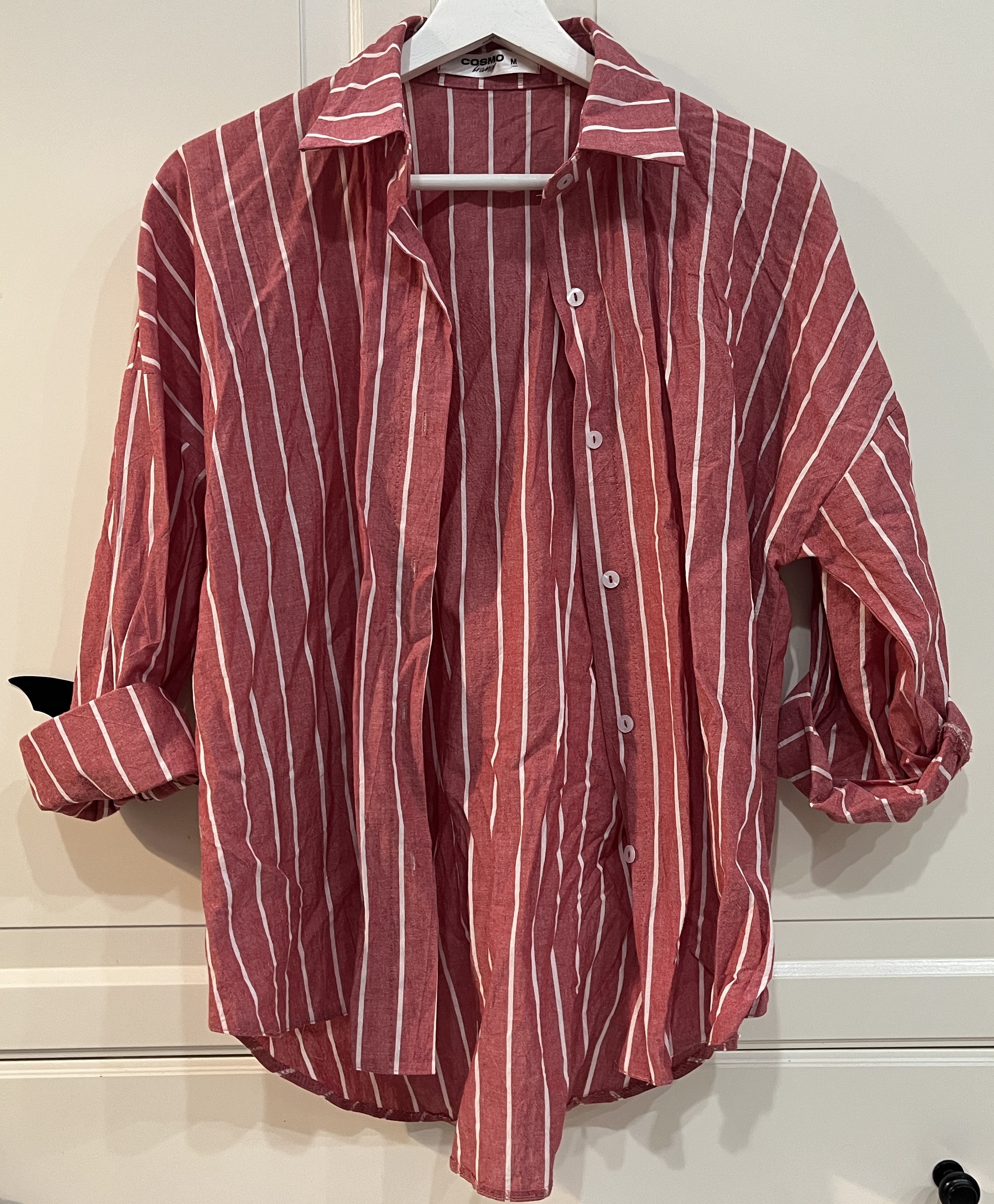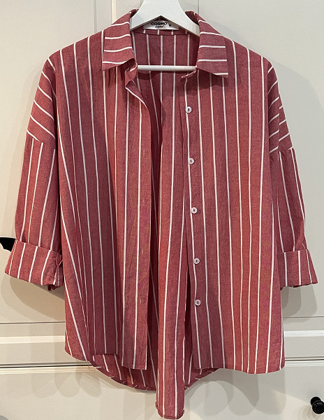 Рубашка, состоящая на 30% изо льна и на 70% из хлопка, пришла в «товарный вид» за долгих 6 минут. Справиться с особо глубокими заломами на весу было непросто, поэтому большую часть ткани мы разглаживали и отпаривали горизонтально.