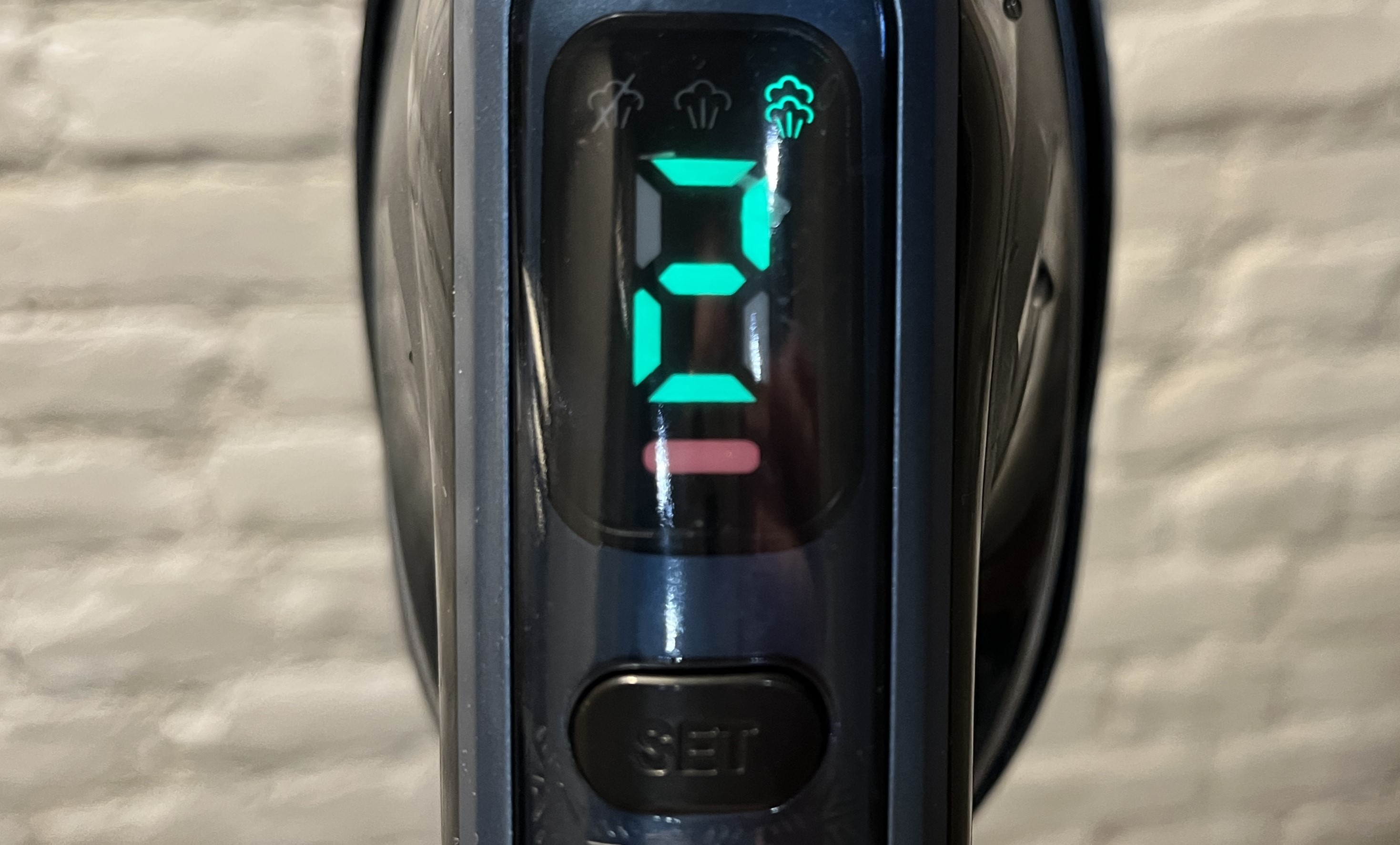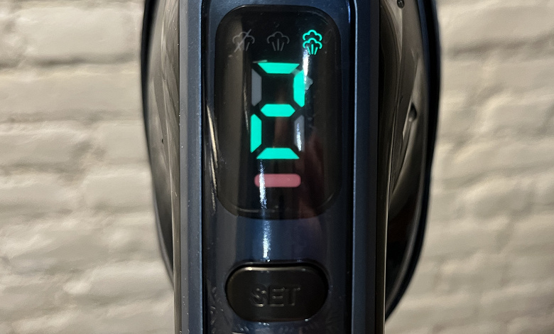 Ручка удобно ложится в руку и имеет объемный симпатичный орнамент, который препятствует скольжению. Помимо кнопки включения на ней также расположен небольшой светодиодный дисплей.