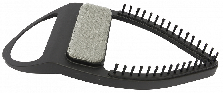 В комплект отпаривателя входит насадка-щетка из пластика с умеренно жестким ворсом и небольшой подушечкой из специальной ткани с мягким ворсом для чистки одежды и предметов мебели.