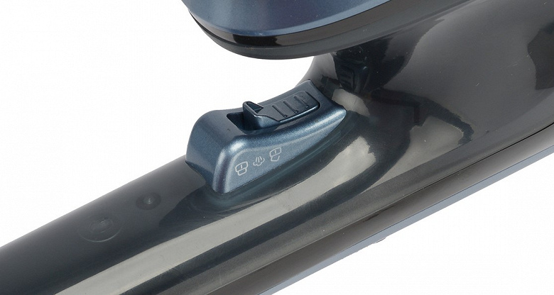Кнопка включения находится на корпусе сверху, а кнопка подачи пара на привычном месте — с внутренней стороны ручки и приходится точно под указательный палец.