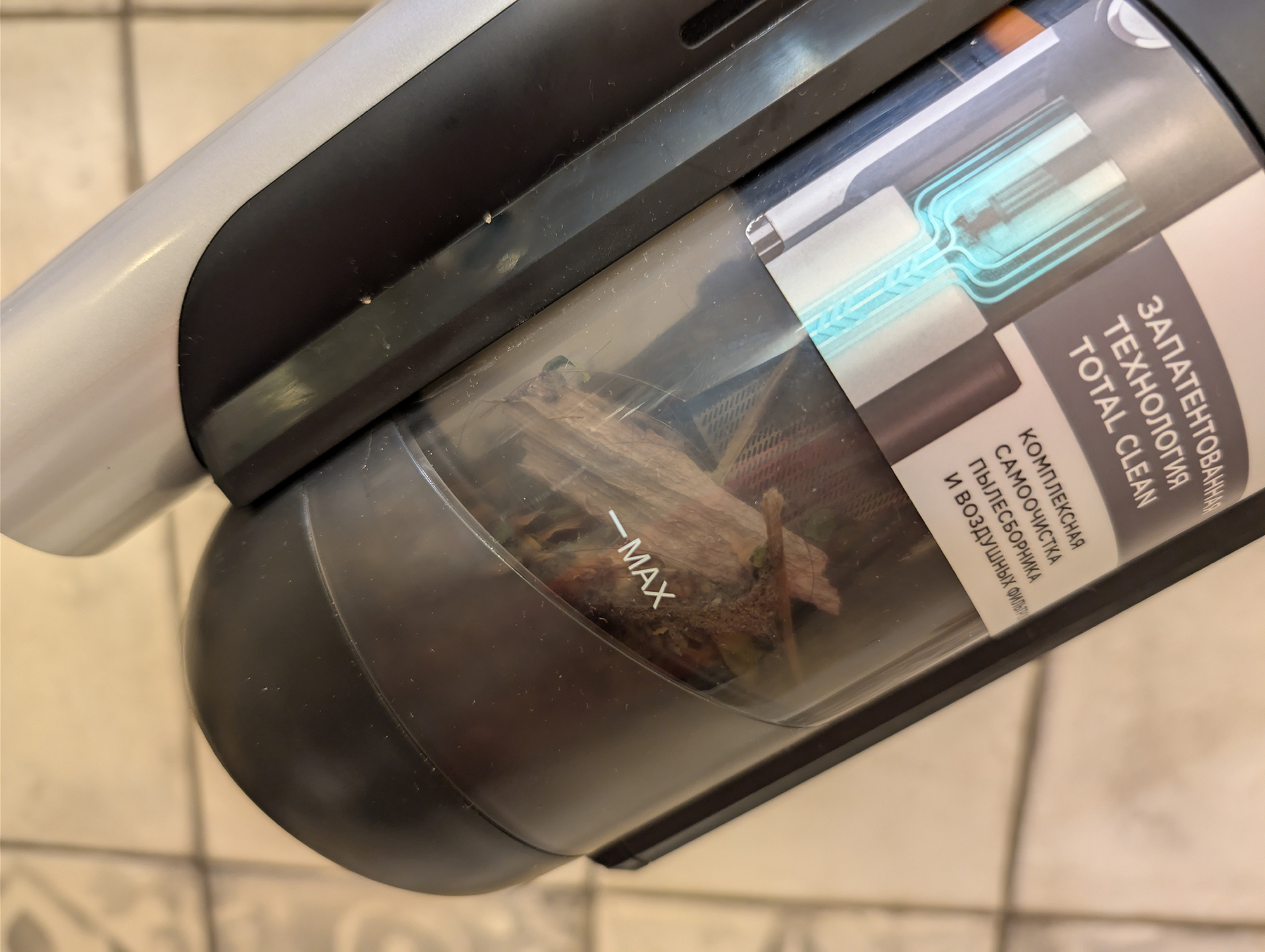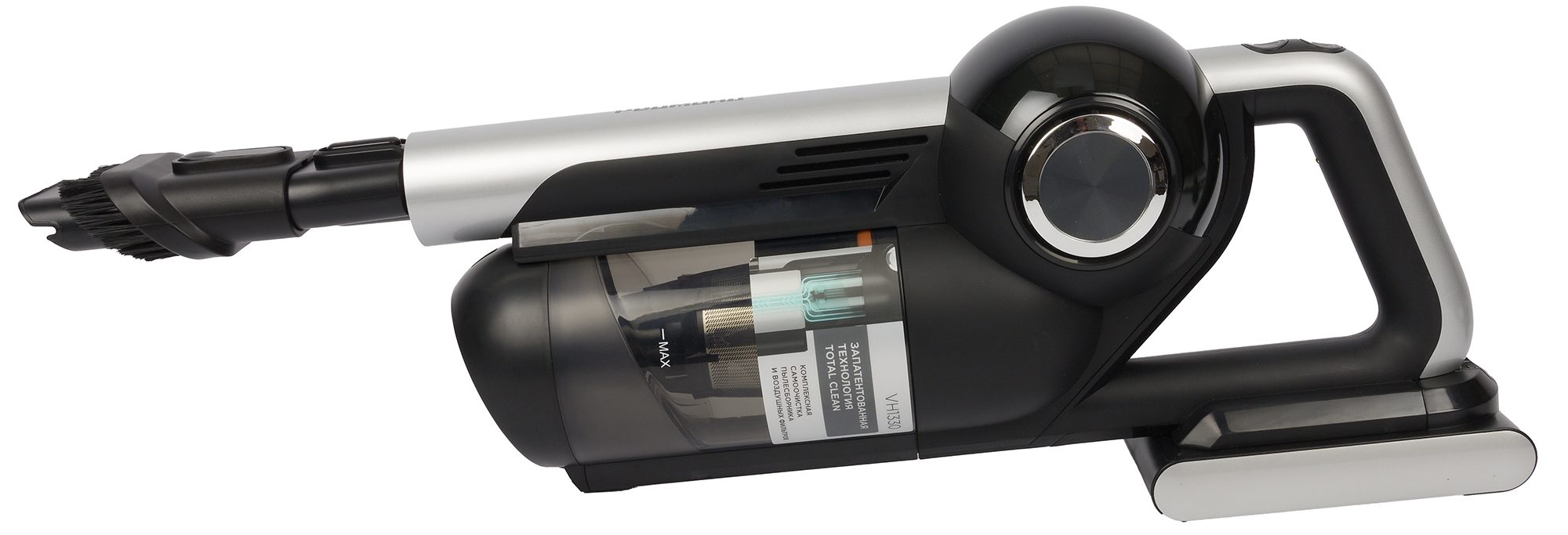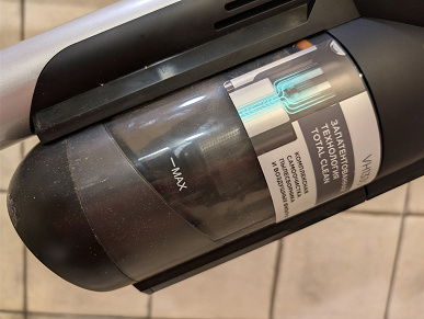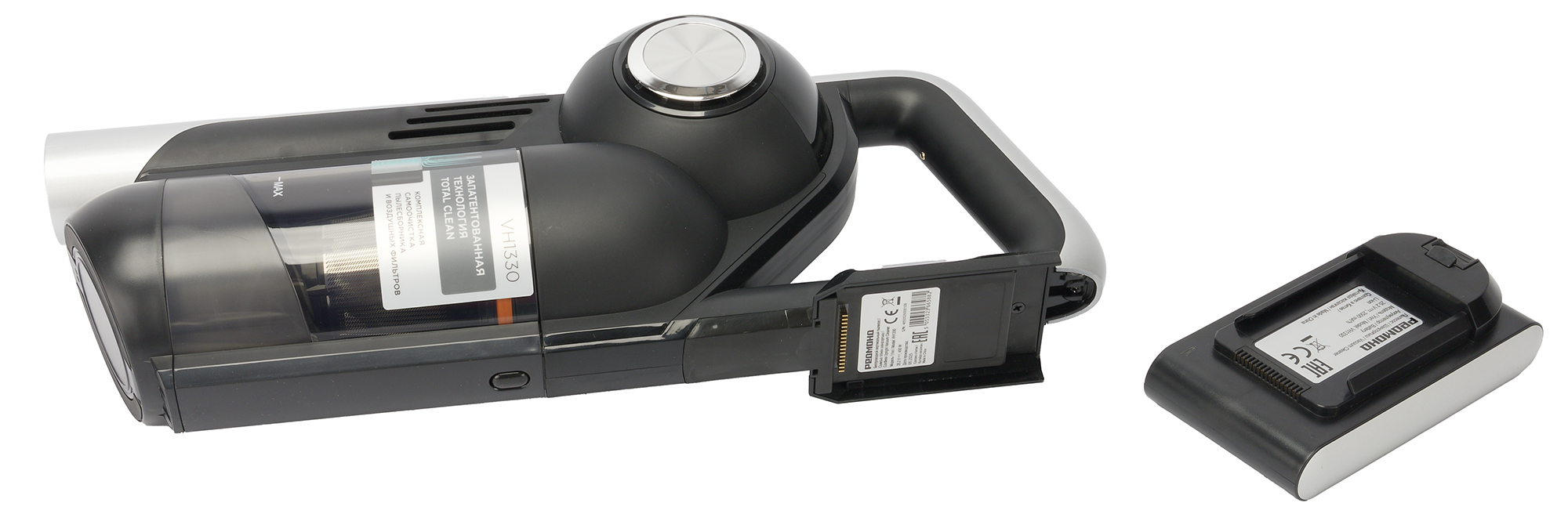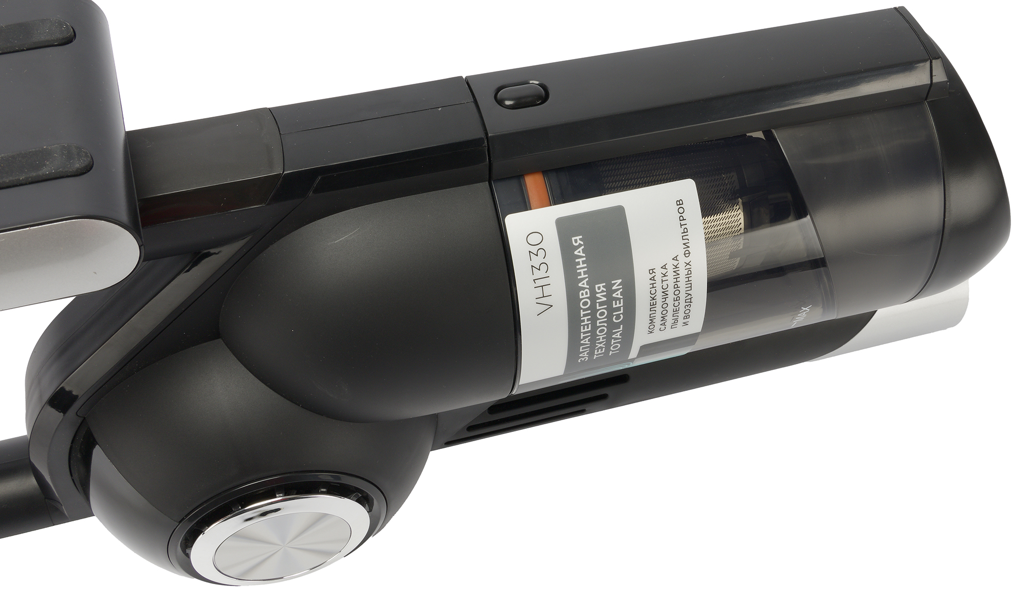 В большинстве систем этого типа за самоочистку отвечает отдельный мощный двигатель, встроенный в базовую станцию. Конструкторы VH1330 решили пойти другим путем, включая мотор основного блока на реверс. Одномоторное решение облегчает и упрощает конструкцию базы, а также заметно снижает стоимость пылесоса: цена нашей модели заметно ниже аналогов. Однако, мощность двигателя, разработанного для аккумуляторного устройства, естественно ниже, чем у стационарного «проводного» мотора: этим и объясняется неидеальный результат самоочистки.