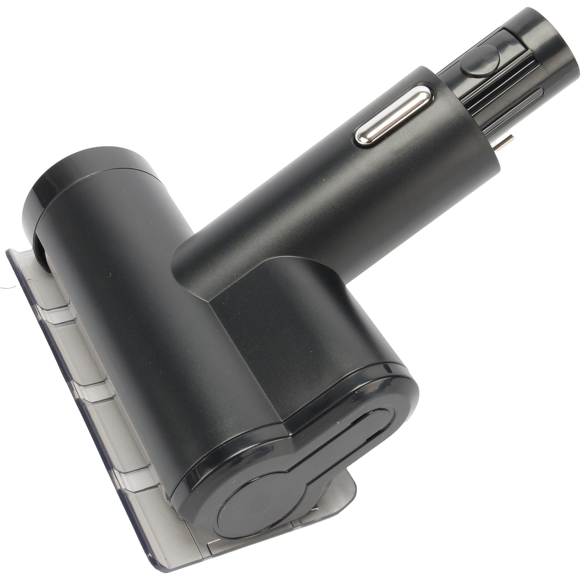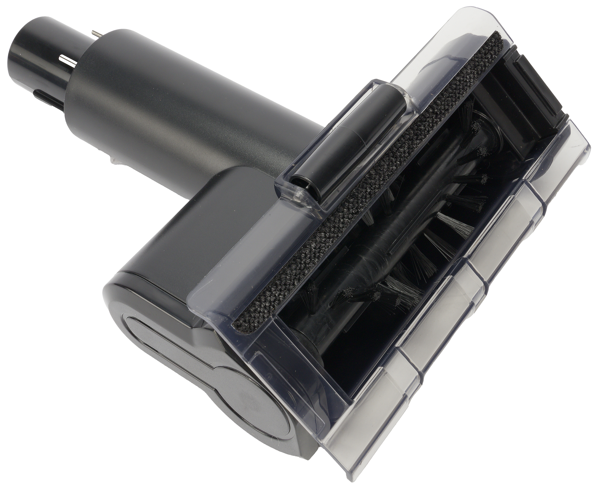 Шарнир моторизованной насадки для сухой уборки пола обеспечивает ей хорошую подвижность: конструкция позволяет ей изгибаться на 70° вправо и влево и от 0° до 90° вперед-назад. Парковочного положения у нее нет.
