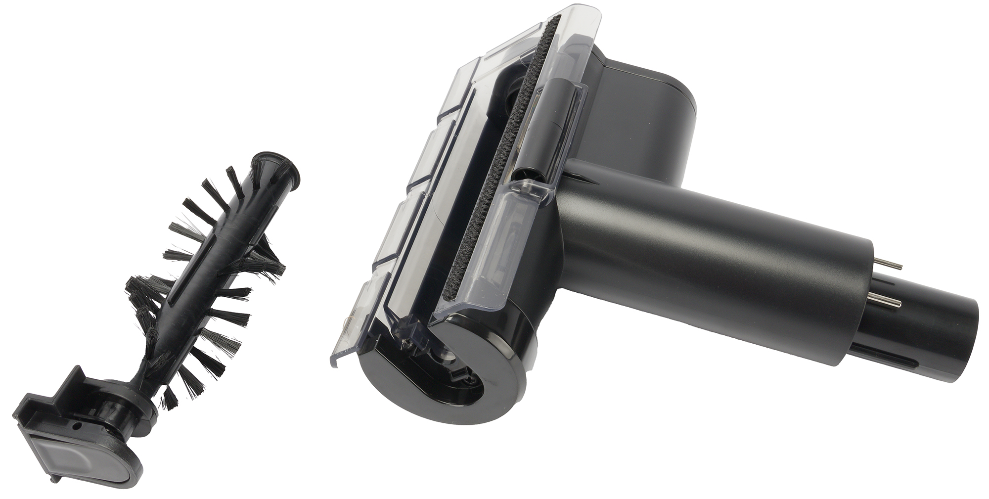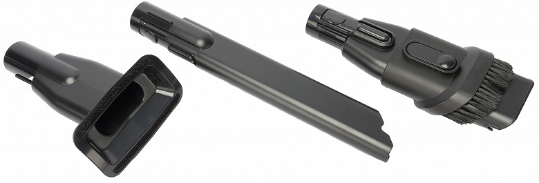 Конструкция простых аксессуаров не преподнесла нам никаких сюрпризов: щелевое сопло и щетка-насадка «2 в 1» вполне подходят для большинства видов ручной уборки.