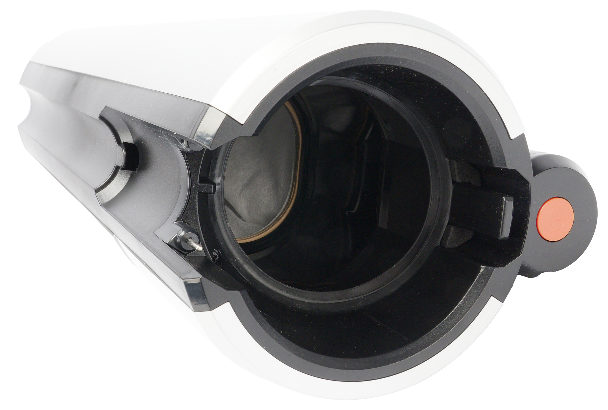 Поток воздуха с мусором и пылью попадает из воздушного тракта в мусоросборник через прямоугольное окошко. В месте соединения с корпусом контейнер оборудован клапаном, предохраняющим содержимое от высыпания.