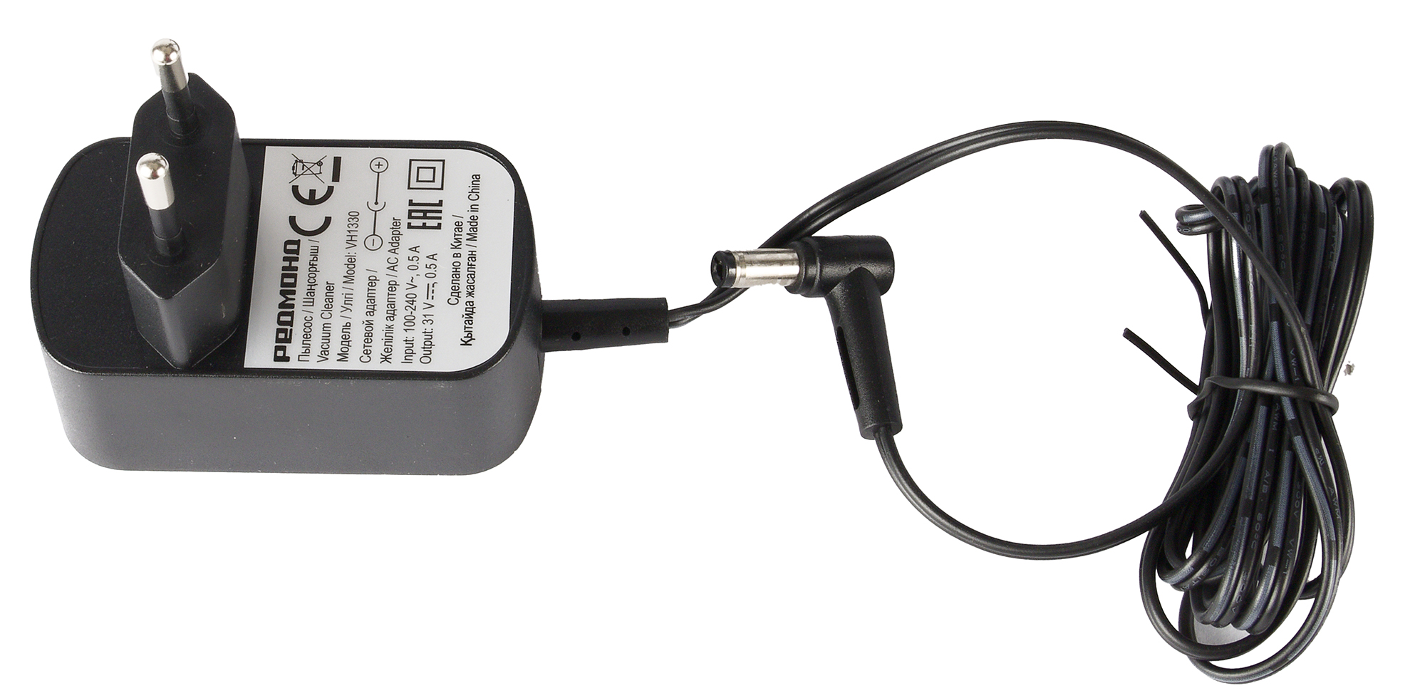 Зарядку пылесоса обеспечивает адаптер постоянного тока (31 В, 0,5 А), подключаемый к разъему на задней стороне базы.