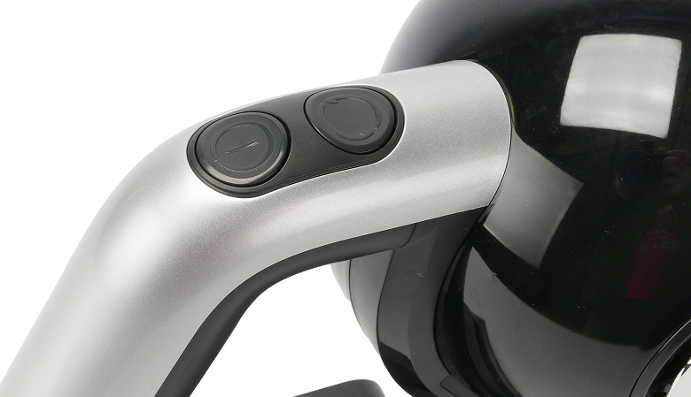 Для управления пылесосом служат две кнопки в верхней части D-образной ручки моторного блока. Одна из них включает и выключает устройство, вторая служит для переключения режимов работы.