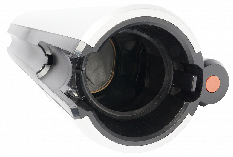 В торце мусоросборника мы видим откидывающуюся крышку. При работе системы самоочистки через нее удаляются мусор и пыль.