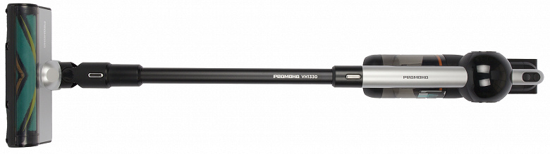 Длина трубки — 60 см. Общая высота пылесоса в конфигурации для подметания пола — 107 см.