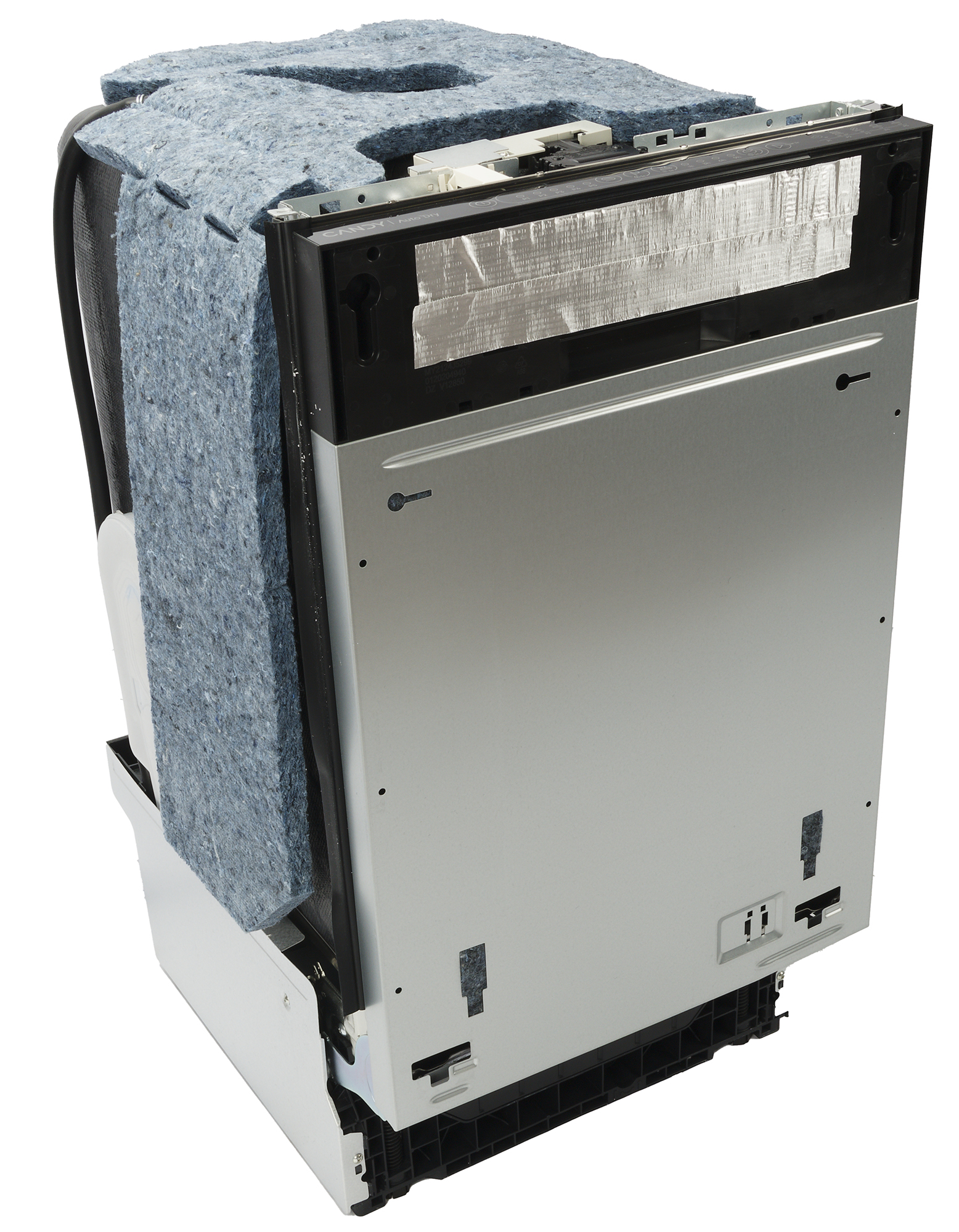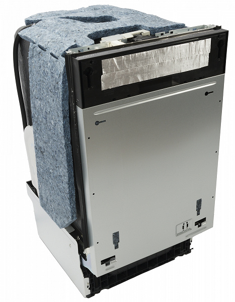 Панель управления машины расположена на торце дверцы, так что при закрытой дверце фасада кухонного гарнитура ее не видно. Уровень шума машины стандартный, а вот тихого ночного режима нет — и это единственное, чего нам не хватило в этой модели.