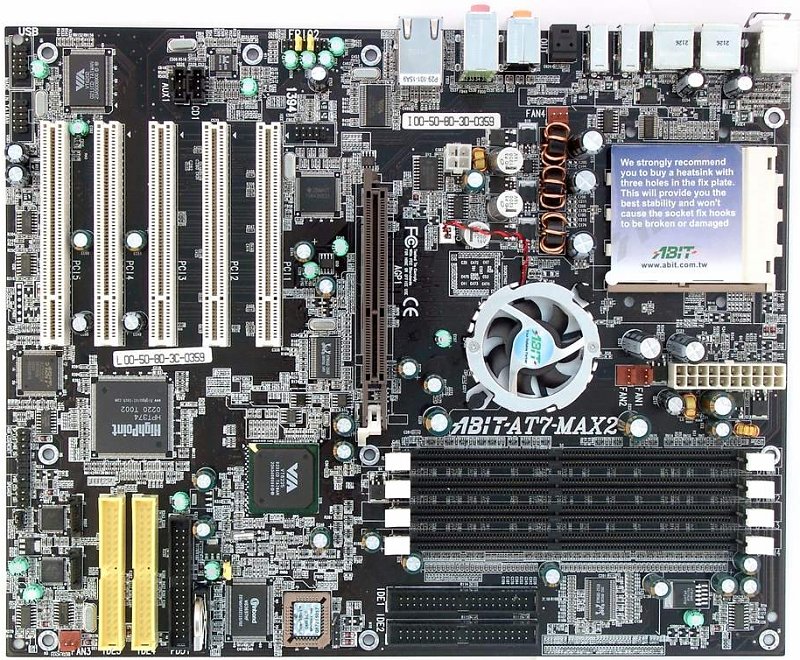 Краткие характеристики платы: разъемы памяти 4 DDR SDRAM; слоты расширения AGP/ 5 PCI; порты ввода/вывода -2 PS/2/ 3 IEEE 1394/ 10 USB 2.0; размеры 305х245 мм.