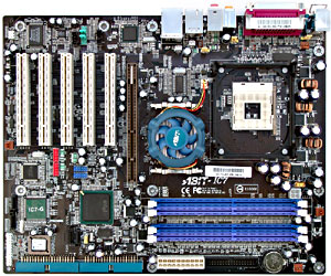Краткие характеристики платы: разъемы памяти 4 DDR SDRAM; слоты расширения AGP Pro/ 5 PCI; порты ввода/вывода 1 COM/ LPT/ 2 PS/2/ 3 FireWire/ 8 USB 2.0; размеры 305х245 мм.
