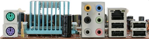 Конструкторы отказались от вывода на заднюю панель устаревших последовательных и параллельных портов, на месте которых разместилась вентиляционная решетка. Но, к сожалению, эти порты не поддерживаются и с помощью внешних планок, так что владельцам старой периферии эту плату рекомендовать мы не можем. Поскольку сам по себе чипсет nForce 550 греется умеренно, столь основательный подход к его охлаждению позволяет рассчитывать, что перегрев не возникнет даже в неблагоприятных условиях (высокая температура окружающего воздуха в сочетании с максимальным разгоном), а в штатном режиме оба радиатора остаются лишь чуть теплыми.