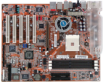 Очередной high-end в исполнении ABIT соответствует уровню, но первоначально оказался не слишком удачным  первые ревизии этой платы отказались запускаться в нашей лаборатории, однозначно же рабочая ее ревизия  1.2 и выше (проблема решается отпаиванием PC Buzzer'a). Также стоит отметить не совсем удачное расположение системы OTES  при установке системы охлаждения на процессор ее крепеж упирается в кожух OTES. Помимо этого, отметим и то, что винты, которыми крепится кожух к плате, расположены как раз напротив стандартных для плат этого форм-фактора крепежных отверстий, в которые устанавливаются винты, соединяющие ее с корпусом. Таким образом, пользователю придется отвинчивать кожух и рассверливать отверстия в нем для установки более толстых винтов с целью надежного крепления к корпусу.