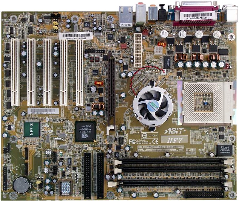 Краткие характеристики платы: разъемы памяти 3 DDR SDRAM; слоты расширения AGP/ 5 PCI; порты ввода/вывода 2 COM/ LPT/ 2 PS/2/ 2 IEEE1394/ 6 USB 2.0; размеры 305х245 мм.