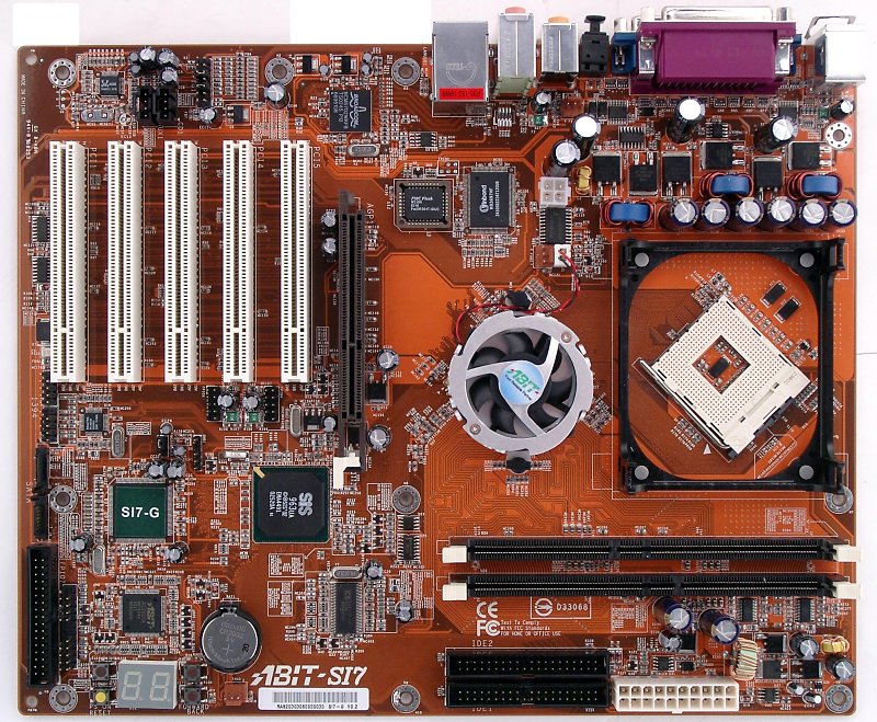 Всего в линейке плат ABIT на SiS R658 две модели, у нас на тестировании была старшая, с гигабитным сетевым контроллером вместо 100-мегабитного на SI7. К нам в руки попал серийный экземпляр, но в минимальной комплектации: только сама плата и компакт-диск с пресс-релизами и спецификациями последних моделей компании.