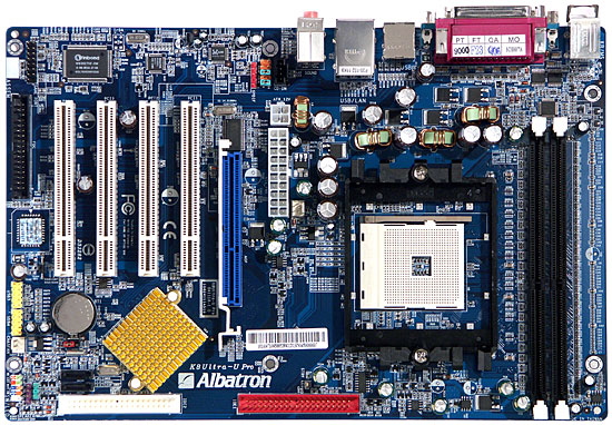 Новая плата от Albatron под названием K8Ultra-U Pro, реализованная на чипсете ULi M1689, и, оснащённая процессорным разъёмом Socket 754 для 32-битных Sempron и 64-битных Athlon 64, не несёт на себе большой функциональной нагрузки, но в то же время позволяет собрать производительную и недорогую систему. Немного смущает отсутствие шины PCI Express и уже не новый Socket 754, но, опять же, всё это компенсируется дешевизной продукта.