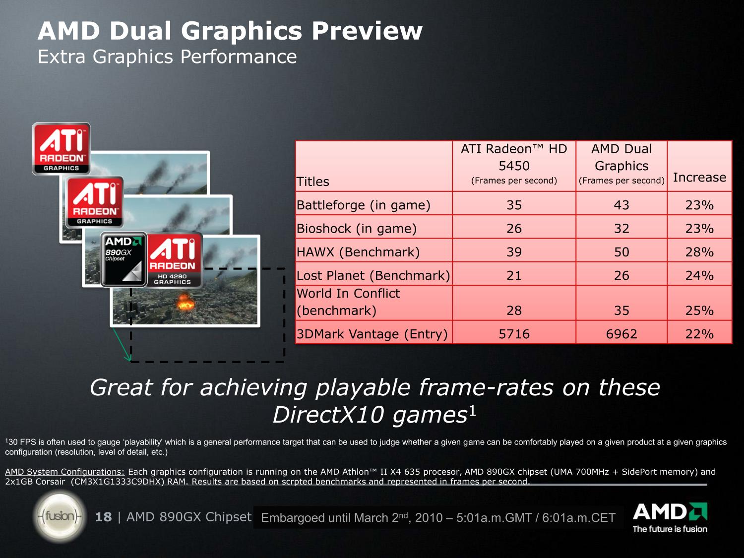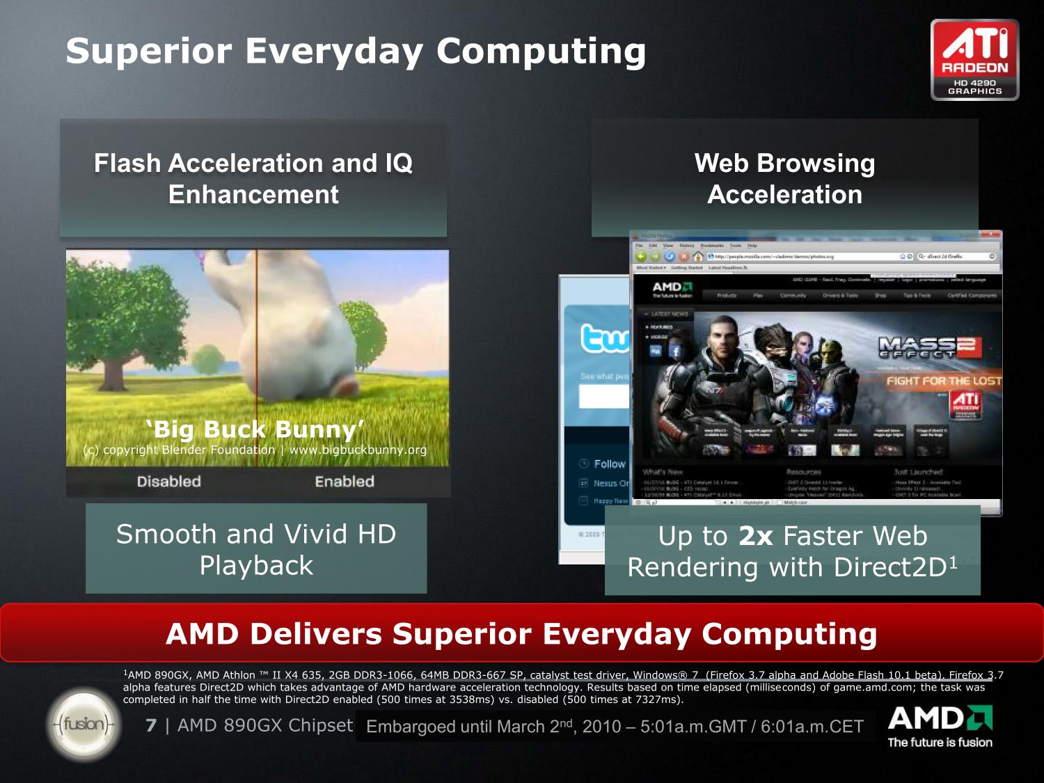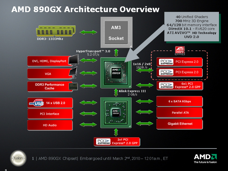 После выпуска чипсета 790GX летом 2008 года, компания AMD взяла своего рода тайм-аут в деле наращивания мощности интегрированной графики. Вернее, конечно, мы догадываемся, что работы ведутся, но, скорее всего, полностью все наработки воплотятся в графическом ядре с поддержкой DirectX 11, которое будет входить в состав кристалла Fusion вместе с вычислительными ядрами центрального процессора.