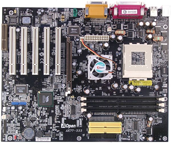 Разводка платы достаточно удобна, но не лишена и привычных незначительных недостатков: разъемы аудиовходов и разъем питания расположены между слотом AGP и блоком задней панели, что вызывает некоторые затруднения при сборке. Доступ к перемычкам и переключателям не затруднен даже при установке платы в корпус, их краткое описание приведено на текстолите платы.