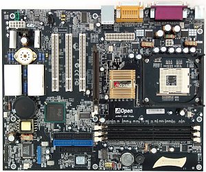Краткие характеристики платы: разъемы памяти 3 DDR SDRAM; слоты расширения AGP/ 3 PCI; порты ввода/вывода 2 COM/ LPT/ 2 PS/2/ 6 USB 2.0; размеры 305х245 мм.