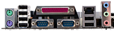 Достаточно стандартное сочетание, можно отметить только наличие обоих COM-портов (сейчас многие производители ограничиваются одним) и большое количество разъемов USB целых 6.