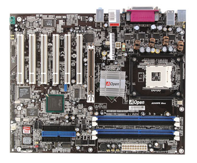 Плата возглавляет линейку продукции компании AOpen на базе семейства чипсетов i865, а потому можно лишь удивляться, что именно для этой модели прошивка BIOS с поддержкой технологии PAT вышла последней. В остальном же все достаточно ожидаемо: традиционно богатая для топового продукта функциональность и неплохая комплектация соответствуют высокому статусу платы. Отметим, что компания предлагает и другие решения на базе i865PE, но все они основаны на иной (общей) PCB и не досчитываются следующих возможностей по поддержке периферии: AX4SPE-L дополнительного SATA RAID-контроллера и FireWire, AX4SPE-N вдобавок чипсетной поддержки Serial ATA (использован южный мост ICH5) и Gigabit LAN (использован внешний чип Broadcom 10/100 Мбит), а младшая модель в линейке AX4SPE к тому же вообще не имеет сетевого контроллера.