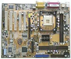 Компания ASUSTeK, в отличие от большинства производителей переработала дизайн платы на i850 для нового типа процессорного разъема. Не секрет, что многие производители сокращают расходы на разработку плат именно таким образом — не меняя дизайн PCB старого продукта, разводят лишь электрические цепи для разъема процессора. Что послужило причиной переработки — сказать трудно, никаких явных огрехов в плате ASUS P4T не было.