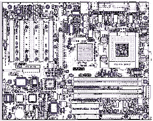Плату удалось вписать в Standard ATX с размерами 24,4 x 30,5см, но при этом все слоты оказались сдвинуты на один влево. Создается впечатление, что системных плат для Pentium 4 с шестью слотами PCI мы не увидим вовсе. И даже в таком состоянии, со сдвинутыми слотами, конденсаторы инверторов находятся вплотную к слоту AGP, что впрочем, установке AGP плат не помешает.