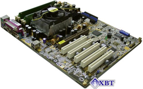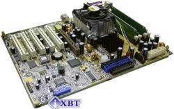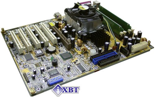 На плате установлен AGP Pro слот, что применительно к платам на процессоре Pentium 4 более чем оправдано. Для карт на GPU от NVIDIA, например, это не столь актуально, т.к. на чип на плате всего один, а все более совершенные технологии производства неуклонно снижают его энергопотребление. Совсем другое дело — профессиональные видеокарты с множеством чипов и радиаторами размером с саму плату. Им никак не обойтись без дополнительного питания, а процессор Pentium 4 составит им достойную компанию.