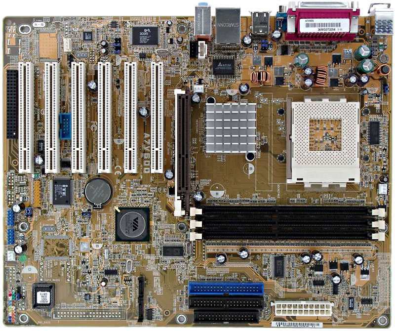 Краткие характеристики платы: разъемы памяти 3 DDR SDRAM; слоты расширения AGP/ 6 PCI/ 1 Wi-Fi (под специальные карты от ASUS); порты ввода/вывода 2 COM/ LPT/ 2 PS/2/ 8 USB 2.0; размеры 305х245 мм.
