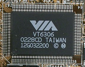-  контроллер шины IEEE1394, реализованный на базе микросхемы VIA VT6306, с поддержкой 3 портов.