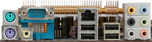 Дизайн платы весьма удачный. Положительно можно отметить и положенный «на бок» IDE-разъем (жаль лишь, что, ввиду особенностей чипсета, он имеется в единственном числе) и удаленные на достаточное расстояние от графического порта разъемы SATA, так что видеокарта с громоздкой системой охлаждения установится без труда. Разъем для флоппи-дисковода также помещается в более удобном месте, нежели принятый по современной моде нижний край платы. К сожалению, на задней панели не установлен LPT-порт, хотя места для его установки там достаточно. Также соотношение количества PCI и PCIE-слотов можно было бы изменить в пользу первых, например, пожертвовав одним PCIEx1-слотом, претендовать на который до сих пор может лишь крайне ограниченный спектр карт расширения.