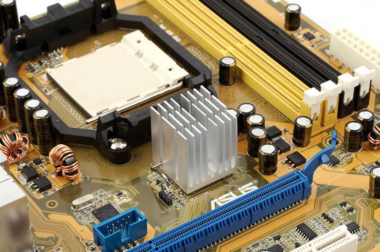 Радиатор на северном мосту очень компактный, и поэтому выглядит высоким, хотя возвышается над платой всего на 3 см и не помешает установке какого-угодно процессорного кулера. Со своей задачей справляется легко, как уже не раз отмечалось, посоревноваться в экономичности с современными чипсетами AMD могут, пожалуй, лишь чипсеты VIA, причем, скорее всего, победа окажется на стороне компании с названием, начинающимся на букву «A» (а не заканчивающимся).