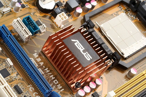 Радиатор на северном мосту относительно высокий (по меркам ранее виденных нами плат на этом чипсете), вернее сказать — «не низкопрофильный», поскольку высота 3 см соответствует стандартам, исходя из которых проектируются, в том числе, и кулеры с массивными радиаторами, поднятыми над поверхностью платы за счет тепловых трубок. Габариты радиатора явно намекают на возможность разгона графического ядра, а чтобы разогнанная система стабильно работала под нагрузкой, даже когда окружающая среда по-летнему теплая, имеет смысл при выборе процессорного кулера обратить внимание на модели с возможностью косвенного обдува чипсетного радиатора, благо он очень хорошо к этому приспособлен.