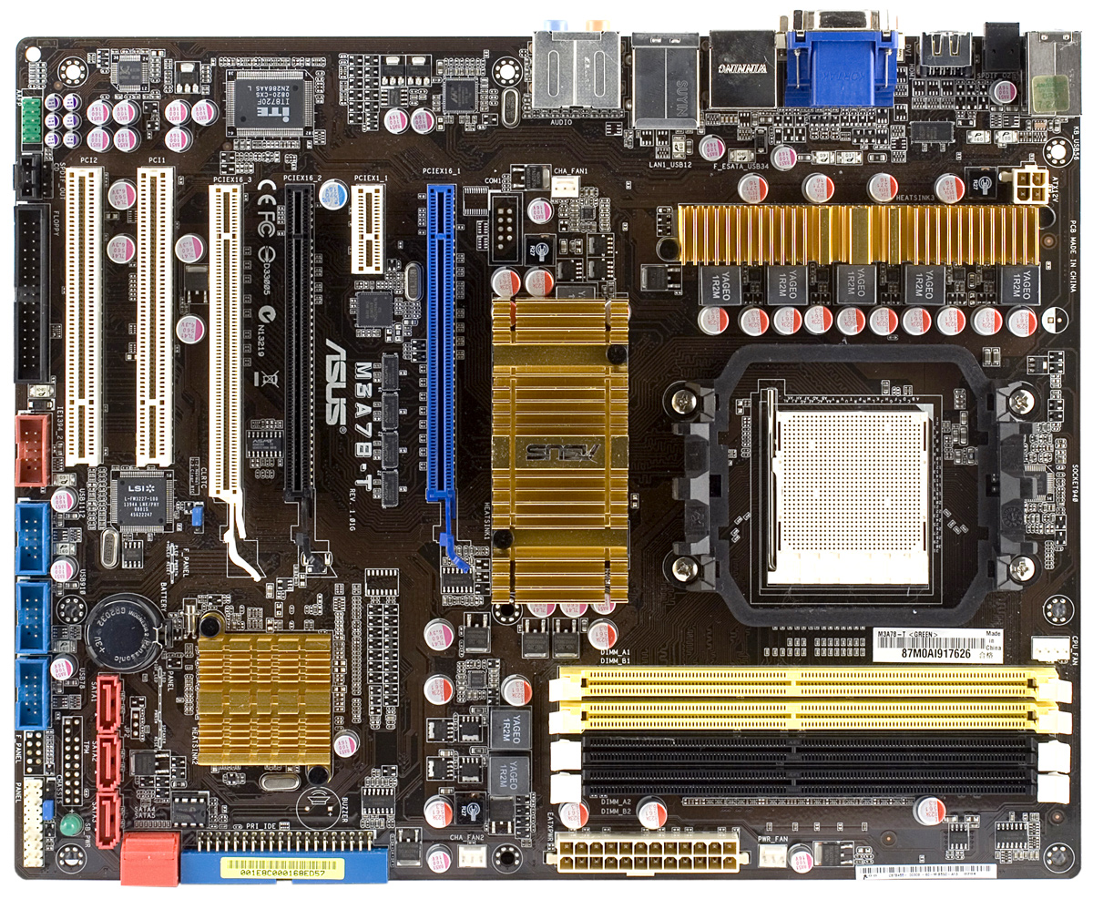В линейке компании ASUS традиционно присутствует максимальное количество моделей по сравнению со всеми остальными производителями, причем не только за счет обилия версий с различной комплектацией и дизайном на наиболее популярных чипсетах, но и за счет того, что все возможные чипсетные комбинации, предлагаемые чипмейкерами, непременно реализуются хотя бы в одной, а то и нескольких моделях от этого производителя. С одной стороны это обеспечивает возможность выбора, но в то же время, заставляет разработчиков соблюдать позиционирование каждого чипсета на ту или иную категорию пользователей, с тем чтобы не создавать конкуренцию внутри собственного модельного ряда. В частности, если большинство остальных производителей с появлением чипсета AMD 790GX, выпустили на его основе наиболее оснащенные модели для платформы Socket AM2+, то ASUS не преминула обновить и версию на 790FX, дополненную новым южным мостом SB750 (ASUS M3A79-T Deluxe, мы рассмотрим ее в ближайшее время, поскольку актуальность топовых моделей под Socket AM2+ существенно возрастает по мере приближения анонса Phenom II). Именно эта плата и заняла верхнюю позицию в модельном ряду, в свою очередь, рассматриваемая M3A78-T на 790GX, хотя и укомплектована всеми необходимыми интерфейсами, выглядит достаточно скромной, то есть не располагает системой охлаждения на тепловых трубках и другими признаками дорогих моделей, которые мы нередко встречаем на платах с этим чипсетом от других производителей. Но она уже широко представлена в рознице, стоит относительно недорого, и определенно заслуживает внимания тех, кто планирует собрать универсальную среднебюджетную конфигурацию.