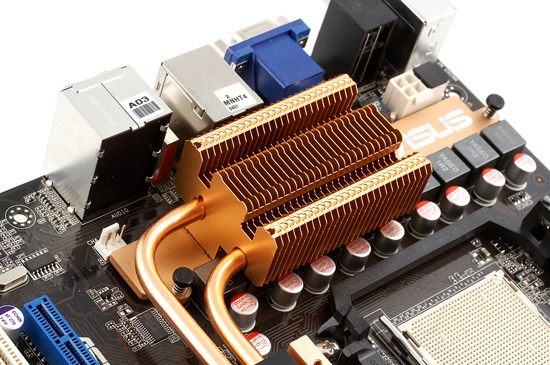 Система охлаждения чипсета в точности копирует уже рассмотренную нами на примере ASUS M3A32-MVP Deluxe. Контакт радиатора с транзисторами в схеме стабилизатора питания обеспечивается через эластичную термопрокладку с отличными теплопроводящими свойствами, а микросхемам чипсета досталась жесткая термопаста, которую стремящиеся к совершенству обычно стирают и используют процессорную АЛСил-3 или КПТ-8. Но принципиальной необходимости в этом нет, чипсет, вероятно, и уступает в экономичности своему идеологическому конкуренту AMD 790FX, но данная система охлаждения достаточна для обоих.