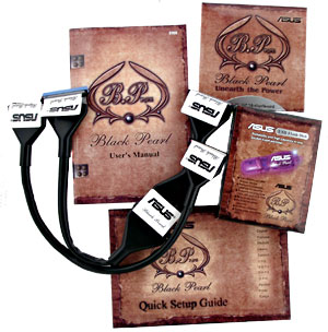 Эта плата отличается от базовой модели P4PE как дизайном, так и комплектацией: вновь мы видим стильный продукт от ASUS со знакомым любому фанату компьютерной техники названием. На сей раз от строгого черно-серебристого дизайна коробки и платы (дружно вспомним модель CUSL2-C Black Pearl) отказались, выдержав оформление в стиле «пиратских» романов, навевающем ностальгические воспоминания о детстве. Коробка платы похожа на сундучок с сокровищами; руководства пользователя  старые карты, указывающие путь к этим сокровищам; сама плата и идущий в комплекте флэшдрайв символизируют черную и розовую жемчужины. Очень красивый комплект, который приятно просто держать в руках.