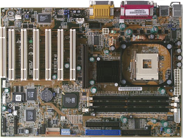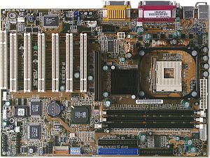 Разводка платы достаточно привычна и удобна: так, разъемы IDE и FDD размещены перед слотами памяти. В расчете на владельцев старых, не соответствующих спецификации ATX 2.03, блоков питания на плате предусмотрены два разъема для подачи +12 В на плату один из них выполнен в виде традиционного разъема питания для жестких дисков и т. п. На плате, как обычно (для изделий ASUS), присутствует разъем для подключения ASUS iPanel.