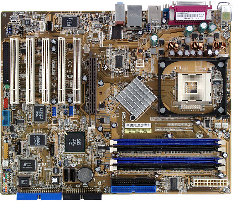 На плате разведена, но не распаяна микросхема сетевого PHY-контроллера Realtek она применяется в модели P4S800D, у которой сетевой интерфейс (Fast Ethernet) обеспечивается MAC-контроллером южного моста чипсета, а микросхема Gigabit Ethernet от 3Com отсутствует. Вдобавок младшая модель лишена контроллера FireWire и дополнительного контроллера SATA/IDE RAID на чипе SiS180 все они просто не распаяны, так как PCB у обеих моделей общая. Модель P4S800D-E Deluxe (на SiS655TX) основывается на этой же PCB и ее отличия (помимо, разумеется, другого северного моста) состоят в использовании иного аудиокодека (Analog Devices AD1888) и гигабитного сетевого адаптера (Marvell 88E8001-LKJ). Размер платы 305х245 мм (полноразмерный ATX, крепление к корпусу девятью винтами, все края платы жестко фиксированы). Для осуществления системного мониторинга используются возможности микросхемы Winbond W83627THF-A. Контролируются: