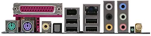 - PS/2 мышь, клавиатура, LPT, S/PDIF-Out типов TosLink и Coaxial;