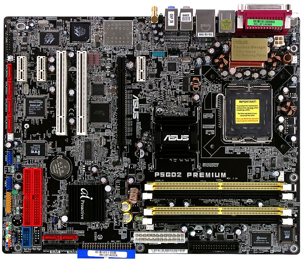 - ASUS P5GD2 (убраны: один контроллер Gigabit Ethernet, SATA RAID, WiFi);