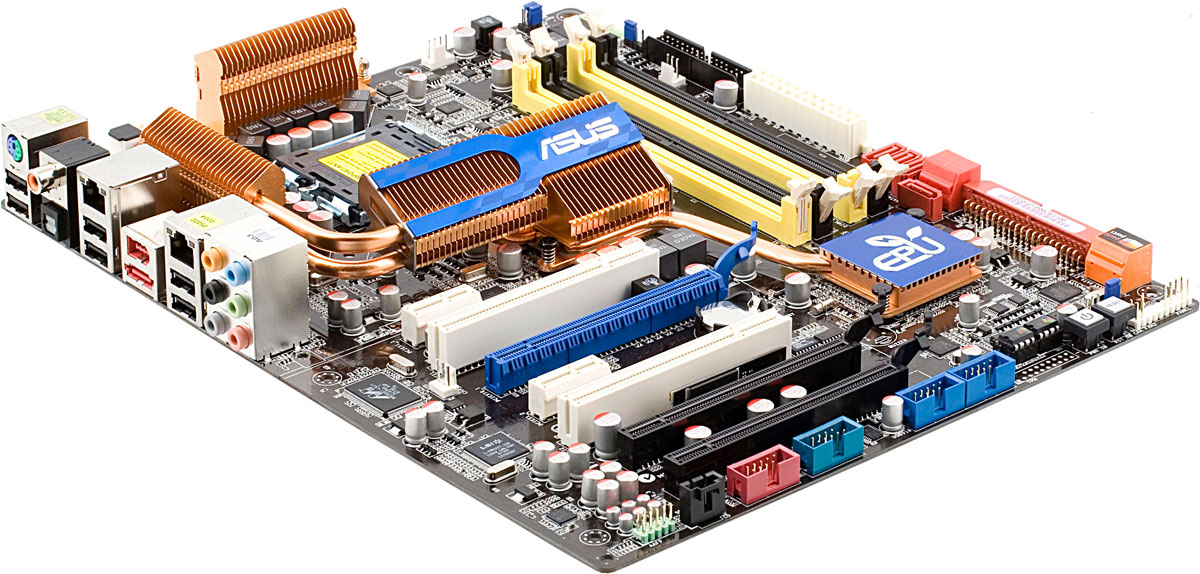 Причина необычного расположения слотов для памяти выясняется при внимательном рассмотрении схемы стабилизатора напряжения ключевых элементов платы — это как раз тот компонент, которым ASUS может полноправно гордиться. Во-первых, топовые платы серии ASUS P5Q ставят новый рекорд по количеству каналов импульсного стабилизатора питания процессора: 16! Причем в данном случае мы видим 16 полноценных каналов, со своим индивидуальным драйвером и двумя полевыми транзисторами у каждого, что должно обеспечивать исключительно высокую эффективность стабилизатора и меньший нагрев компонентов. Более того, стабилизаторы напряжения памяти и чипсета сделаны двухканальными (именно необходимость разместить дроссели соответствующего стабилизатора вынудила инженеров «поиграть» с привычным расположением слотов для памяти) — на сегодняшний день это уже не уникальное явление, но все еще «элитный» отличительный признак. Выбор прочих электронных компонентов также достоин самой искренней похвалы: в процессорном стабилизаторе используются полевые транзисторы с пониженным показателем RDS(on) (сопротивлением открытого канала); конденсаторы на всей плате — полимерные, производства Fujitsu, с повышенным сроком службы; у всех дросселей ферритовые сердечники.