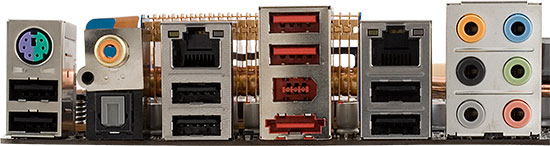 Хотя плата, конечно, выделяется новым процессорным сокетом, да и 6 слотов для памяти встретишь не каждый день, в целом разводка никаких сюрпризов не содержит. Понятно, что топовая модель на топовом чипсете будет скорее предлагать максимальное число перспективных технологий, чем заботиться о поддержке старых, так что один комбинированный разъем PS/2 на задней панели и 2 слота PCI — это еще очень неплохой вариант для фанатов старой периферии. Зато слотов PCIEx16 на плате 3 штуки, что позволяет объединить три видеокарты в CrossFireX или организовать стандартную спарку видеоускорителей SLI или CrossFireX. Обратите внимание, что 3-way SLI не поддерживается — платы на базе X58 в индивидуальном порядке получают сертификацию NVIDIA для поддержки тех или иных режимов SLI (полученный от NVIDIA ключ прошивается в BIOS, а при работе его проверяет драйвер ForceWare), и, конечно, стоимость этой сертификации прямо пропорциональна разрешенным возможностям. Конфигурация скорости слотов зависит от числа установленных карт и настроек в BIOS Setup, максимальный режим — x16+x8+x8 или x16+x16+x1.