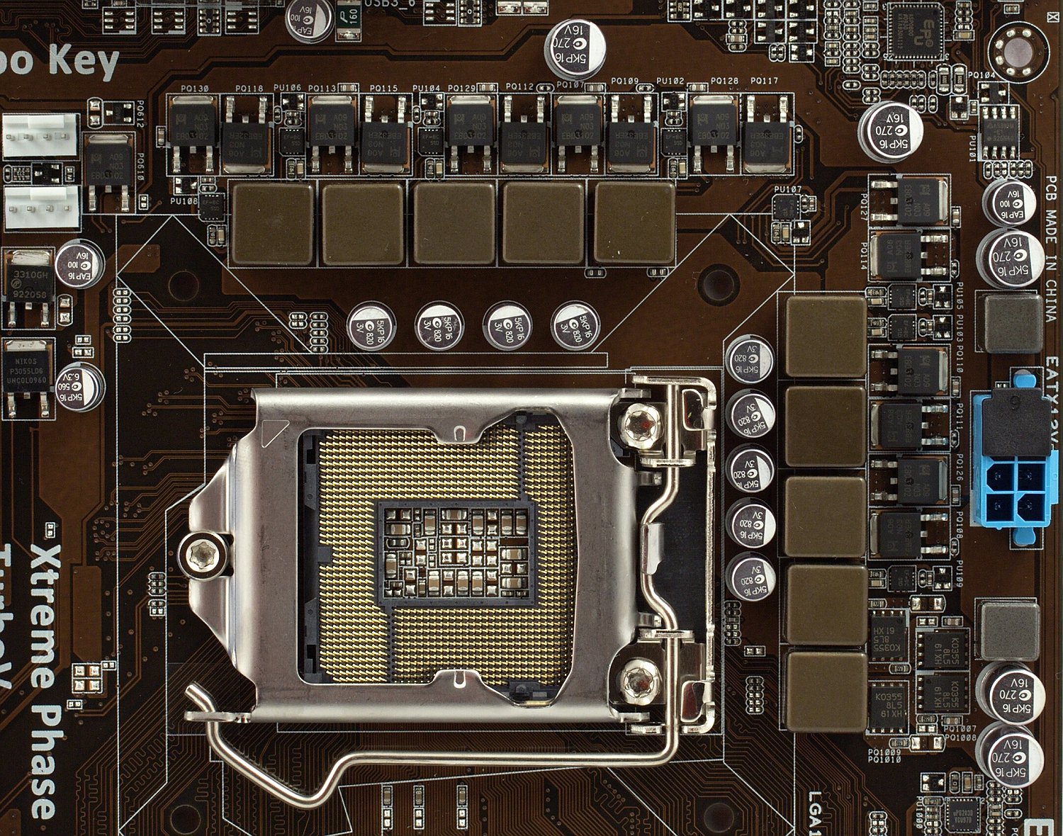 Система охлаждения чипсета у всех плат линейки предполагает один вариант из одного: относительно небольшой, плоский (не мешающий установке длинных карт расширения) радиатор, декоративно оформленный в виде стилизованной снежинки. Крепится он, кстати, металлическими винтами сквозь отверстия в текстолите даже у бюджетной рассматриваемой модели. К счастью, все относительно недорогие модели P7P55D соблюдают разумную умеренность и при охлаждении конвертера питания процессора: у младших полевики предоставлены сами себе, у средних на них монтируются (опять же при помощи нормальных винтов) небольшие радиаторы, а у старших эти два радиатора соединены тепловой трубкой. Если в последнем случае и наблюдается некоторое излишество, то совсем небольшое и вполне простительное. У P7P55D LE радиаторов на полевиках нет, но при 8 каналах питания (16 полевых транзисторах) в основной цепи это не столь уж критично, нагрев в результате остается в разумных пределах, хотя для серьезного разгона усиленное охлаждение бы не помешало.