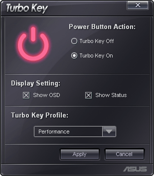 Реализована, однако, возможность сохранить удачные наборы этих параметров в собственные профили разгона, которые потом можно использовать не только в TurboV, но и в сопутствующей утилите Turbo Key. Эта исключительно компактная программа позволяет перехватывать нажатие кнопки включения (на корпусе) и быстро разгонять систему в соответствии с указанным заранее профилем разгона (и снимать разгон при повторном нажатии). Наконец, «головная» утилита AI Suite предлагает некоторые, весьма ограниченные, возможности мониторинга, зато позволяет быстро запустить одну из программ фирменного набора, включая очень полезную и наглядную Fan Xpert.