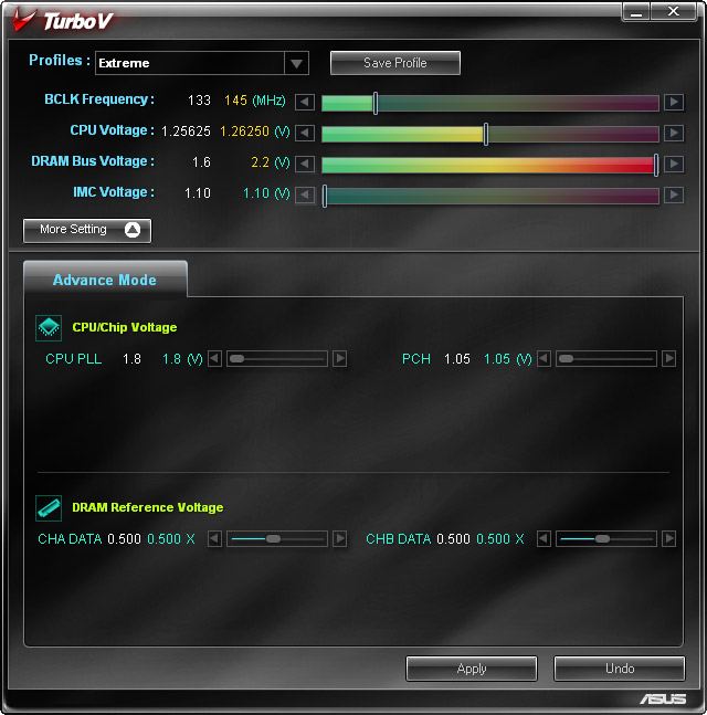 Впрочем, как одна из младших плат в семействе, P7P55D LE не может претендовать и на полную функциональность фирменных утилит. Отвечающая за разгон в нынешнем поколении программных продуктов ASUS утилита TurboV в данном случае устанавливается в своей упрощенной ипостаси, без суффикса EVO. Соответственно ограничены и дополнительные возможности по подъему напряжений при разгоне (CPU PLL и PCH, референсные напряжения каналов памяти), а мониторинга как такового программа и вовсе не предлагает. Кроме того, доступен всего один режим разгона — вручную, с указанием желаемой частоты BCLK, уровней напряжений ядра процессора, интегрированного контроллера памяти и модулей памяти.