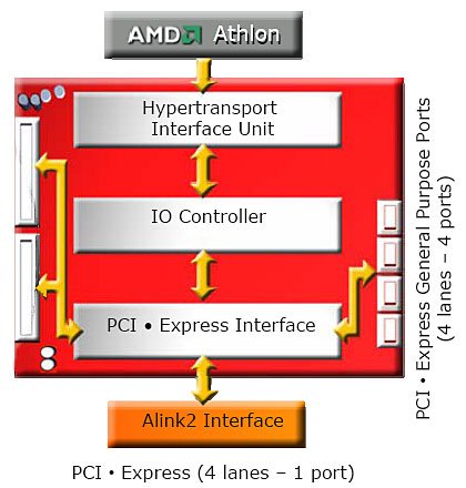 - интерфейс Alink2 (4 линии/1 порт PCIEx4) для подключения южного моста