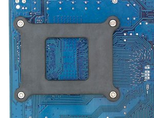 Для уменьшения нагрузки на PCB при установке массивных кулеров на обратной стороне платы находится усилительная пластина.