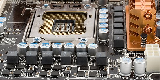 Система питания платы — вполне подстать топовому продукту. Собственно, если раньше то тот, то другой производитель «выстреливали» отдельной платой или серией плат, претворяя в жизнь новые интересные технологии, то на сегодняшний момент выделяется лишь MSI со своим относительно небольшим числом каналов преобразователя питания процессора, использующим зато в каждом канале микросхемы DrMOS вместо традиционной схемы на полевых транзисторах и драйверах. (Ну и всегда интересно посмотреть на платы с цифровым преобразователем питания, но они встречаются очень редко.) В данном случае Biostar реализует почти максимум возможного в рамках традиционной технологии: 12-канальный конвертер питания процессора, отдельные двухканальные преобразователи питания для модулей памяти и северного моста, на всей плате распаяны только полимерные конденсаторы японского производства, все дроссели — экранированные с ферритовым сердечником, полевые транзисторы — с низким показателем RDS(ON) (сопротивлением открытого канала).